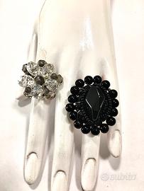 Set di anelli made in Italy di fattura artigianale mai indossati, regolabili con resine e cristalli.