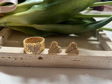 Il set e reallizzato totalmente a mano con perline giapponesi di alta qualità Miyuki. Color oro.
