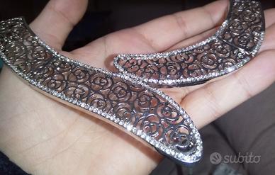 Vendo set di collana in metallo e brillantini più bracciale coordinato a 5 euro totali. Regalo anche sacchettino di velluto nero per contenerli e regalarli.
