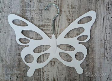 Set di due grucce in plastica bianca a forma di farfalla, perfette per appendere ed organizzare foulard, sciarpe o cravatte.