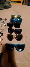 set di occhiali, 17 per la precisione, 6 da sole, 7 da lettura con diverse gradazioni, 4 bifocali, 2 lenti a parte, 3 custodie.