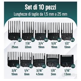 Set di Pettini Guida Magnetici compatibile con Wahl – 10 Pezzi (da 1.5 mm a 25 mm) – Compatibile con Wahl Magic Clip, Senior, Balding, Super Taper e altri + Custodia Organizzatore