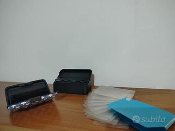 n. 1 portacarte di 10 scomparti color trasparente ed esternamente color azzurro, chiusura girevole.