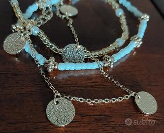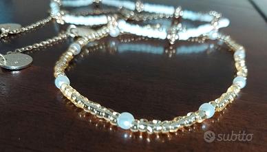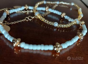 Un bellissimo complemento per tutti gli outfit estivi, da spiaggia, bohemian chic, festival - con perle bianche ed elementi dorati, elastico, diametro circa 7 cm - con perle dorate e perle decorative, elastico, diametro circa 7 cm - in metallo dorato con monete decorative dorate, classica chiusura a gancio, lunghezza regolabile 21-28 cm #beach #summer #party #regalo #gift #present #boho