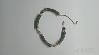 3 pezzi vintage in giada 1 ciondolo rettangolare con iscrizioni dorate , un ciondolo a forma di budda con cappello, Un bracciale in giada con elementi dorati .Solo il bracciale deve essere ricollegato come da foto