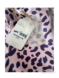 Set Dimensione Danza maculato composta dalla parte superiore da un mix di 95% cotone e 5% elastan, garantisce comfort e resistenza. Il design con scollo tondo e stampa maculata viola , mentre il fondo color rosa. Un capo ideale per accompagnare i movimenti quotidiani con praticità e qualità. La parte inferiore realizzata con un mix di 90% cotone e 10% elastan, offrono un tessuto leggero e traspirante ideale per il ritorno a scuola. Il design a gamba jazz garantisce libertà di movimento, mentre la patch logo ricamata aggiunge un dettaglio raffinato. Un capo funzionale e di qualità, perfetto per accompagnare ogni attività con stile e comfort.