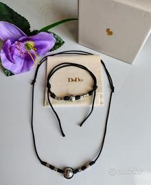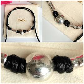 Set composto da: -Collana Dodo Pomellato argento 925 con 1 pepita modello grande + 4 granelli primo modello, il tutto montato su filo cerato sottile total black. I componenti sono tutti originali del marchio Dodo, cosiccome il filo. Indossata un paio di volte, mostra qualche leggero segno di ossidazione sul retro pepita. -Bracciale Dodo Pomellato argento 925 con 1 pepita modello grande + 6 granelli primo modello, il tutto montato su filo cerato total black. I componenti sono tutti originali del marchio Dodo, il filo non sono sicura in quanto ricomposto in gioielleria. La pepita é stata indossata piú volte, il simbolo del Dodo risulta sbiadito, la zona della testa é ben visibile, vedi foto. Parure raffinata e iconica come il marchio Dodo insegna, perfetta per occasioni eleganti e come accessorio everyday. É unisex. Scatola e sacchetto non inclusi. Prezzo competitivo, pezzi acquistabili anche singolarmente. #dodopomellato #pomellato #dodo #dodojewels #argento925