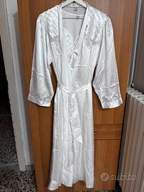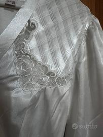 Vendo set da donna composto da una camicia da notte smanicata e dalla vestaglia coordinata con cintura, taglia 50 e mai usato, faceva parte di un corredo matrimoniale.