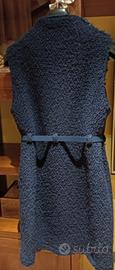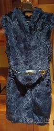 Capo vintage, di qualche anno ma conservato bene. Gilet 3/4 Patrizia Pepe, taglia 42. Pelliccia ecologica di colore blu, con cintino blu e piccolo charm mosca. Il dietro è di tessuto blu. Fodera interna rasata, completamente logata. Chiusura con automatici, rifinito benissimo. Capo vintage di qualche anno, ma conservato bene. Venduti singolarmente 80 l'uno