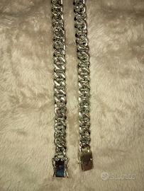 Set gioielli, resi famosi dai rapper, composto da: - Bracciale maglia cubana Aporro, il modello attuale è spedito solamente negli Stati Uniti.Spessore 1,2 cm e lunghezza 18 cm. Caratterizzato da una chiusura a scatola ghiacciata con pietre CZ posizionate a mano. Il simbolo iconico è inciso sulla chiusura della scatola. Materiale: Ottone; Finitura materiale: Placcatura in oro bianco; Tipo di pietra: CZ. Prezzo 249 euro. - Collana a maglie cubane Preziosi Milano. Spessore 1,2 cm e lunghezza standard segnalata sul sito 50 cm. La Collana Ice Fresh Argento Unisex di Preziosi Milano è un gioiello dal design esclusivo e luminoso, pensato per chi ama distinguersi con stile e carattere. La catena a maglia cubana, ricoperta interamente di cristalli brillanti incastonati, crea un effetto “iced out” elegante e di grande impatto visivo. Lega metallica di alta qualità, Cristalli 5A. Prezzo retail 100 euro. - Orecchino singolo Aporro con simbolo euro. Realizzato con incastonatura a tensione, l'orecchino è stato tracciato con due file di pietre CZ a taglio rotondo, che massimizzano il ritorno della luce. Materiale: Argento sterling 925; Finitura materiale: Placcatura in oro bianco; Tipo e qualità della pietra: CZ 5A Fuori produzione, pagati 99 euro NB: Sul davanti sono tutti e tre splendidi e LUCENTI, senza danni visibili quando indossati. La chiusura a scatola del bracciale si è usurata sul retro, usura presente anche tra alcune maglie. La collana presenta un poco di ossidazione verde tra le maglie. Può essere pulita facilmente senza arrecare danno all'oggetto (materiale notevolmente resistente). Gli orecchini sono veramente belli, come il bracciale hanno una leggera ossidazione tra qualche brillantino in alto. Trovate tutto in foto, posso mandarne anche altre. Tenete presente che il prezzo tot. dei prodotti nuovi ammonta a 448 euro. Il prezzo proposto tiene ovviamente conto dell'usura. Ritiro in prov. Como o spedizione TuttoSubito (Poste italiane e UPS) a utenti affidabili.