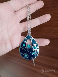 Set gioielli blu smaltato collana + orecchini