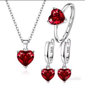 ✨ Set Gioielli Cuore in Argento 925 – Collana + Orecchini + Anello ✨