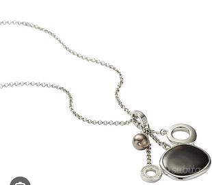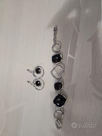 Set gioielli da donna composto da collana, bracciale e orecchini in acciaio e pietre nere mai usati e conservati in scatola originale