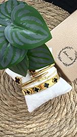 Bellissimo set composto da bracciale rigido stile quadrifoglio nero, collana coordinata e anelli dal design moderno. Finitura dorata lucida con dettagli raffinati e luminosi, perfetti per dare un tocco chic a qualsiasi outfit. 💛 Colore: oro con inserti neri 💛 Stile elegante e alla moda 💛 Ideale per occasioni speciali o uso quotidiano 💛 Ottima idea regalo Condizioni: nuovo 📦 Spedizione veloce