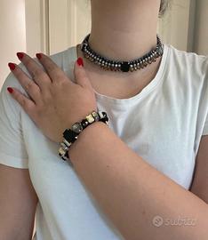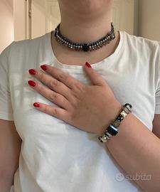 🇮🇹 set gioielli composto da collana e bracciale con pietre nero e argento. Molto appariscente e particolare.