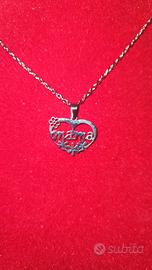 Delicato set Mamma con ciondolo a forma di cuore. - Ciondolo a forma di cuore con scritta Mamma. - Dettagli floreali sul ciondolo. - Catena sottile e luminosa. Tutto in acciaio bracciale più collana #festadellamamma