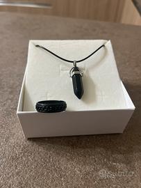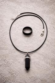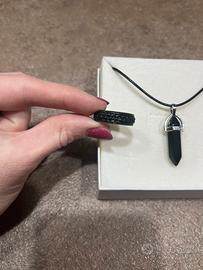 Set coordinato da uomo dal design minimalista ed edgy, perfetto per uno stile urban, dark o casual. Il set è composto da: • Collana: Caratterizzata da un pendente a punta esagonale (stile bullet/cristallo) in colore nero lucido. Il supporto è in metallo argentato e il cordino è in similpelle/cotone cerato nero, dotato di chiusura a moschettone e catenella regolabile per variarne la lunghezza. Lunghezza cordino: 50cm - Misure pendente: 3,5 x 1,3cm. • Anello: Un anello a fascia total black con un dettaglio centrale a trama di catena. Molto resistente e versatile, ideale da indossare su qualsiasi dito. Diametro interno: 2 cm. Stile: Minimal, Gothic, Rock, Streetwear. Condizioni: nuovi, mai usati. Regali non graditi. Spedizione veloce 📦 #gioielli #collana #anello #set #accessori #uomo #man #maschile #nero #black #minimal #streetwear #urban #goth #dark #rock #onice #pendente #fashion #style #silver #pietra #cristallo #acciaio #pelle #lucido #minimal #goth #dark #rock #grunge #ragazzo #giornaliera #aesthetic #streetwear #urban #punk #vintage #moderno #alternative #emo #chic #essenziale #edgy #cyberpunk