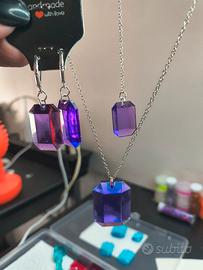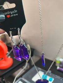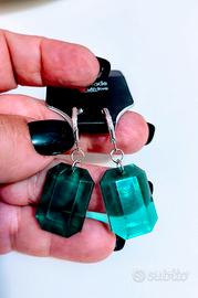 Bellissimo set di gioielli composto da una collana e un paio di orecchini. Entrambi i pezzi presentano una pietra verde sfaccettata e dettagli in argento. - Collana con due ciondoli di diverse dimensioni. - Orecchini pendenti con chiusura a gancio. - Perfetti per aggiungere un tocco di eleganza a qualsiasi outfit.