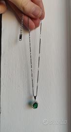 Collana orecchini e anello mai indossati ancora nella confezione originale, color smeraldo, in acciaio stainless steel, NON sono pietre vere