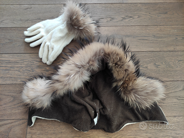 Set Guanti e Cappello in lana con bordo in pelo tg.M