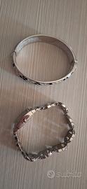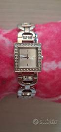 Set Guess Donna – Nuovo, Mai Indossato Vendo elegante set coordinato da donna originale Guess, composto da orologio e bracciale bangle. Entrambi gli oggetti sono pari al nuovo, mai stati indossati e conservati con la massima cura come regalo ricevuto e inutilizzato. Caratteristiche Principali: Orologio: Cassa quadrata in acciaio argentato con lunetta di brillanti cristalli. Quadrante argento minimalista con lancette argentate. Cinturino a maglie geometriche con inserti di cristalli. Meccanismo al quarzo. Bracciale Bangle: Bracciale rigido nero lucido con logo triangolare Guess argentato. Dettaglio zebrato/maculato in nero e crema con piccoli cristalli. Incisione "GUESS" argentata. Condizioni: Nuovo, mai indossato: Ottime condizioni estetiche, come da negozio. Privo di corredo: Venduto senza scatola originale né certificato di garanzia. Autenticità: Presenti tutti i marchi e punzoni Guess originali sulle chiusure e sul quadrante. Note aggiuntive: Il set viene venduto così com'è (visto e piaciuto). È un'ottima opportunità per acquistare un set Guess nuovo a un prezzo vantaggioso rispetto al retail. Non essendo coperto da garanzia ufficiale, il prezzo tiene conto di questo fattore. Massima disponibilità per foto dettagliate e macro per verificare l'integrità e i dettagli di autenticità.
