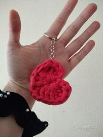 Descrizione: Delizioso set coordinato realizzato interamente a mano all'uncinetto con fettuccia di alta qualità in un vivace color fragola. Il set include un cestino svuotatasche a forma di cuore, perfetto per contenere gioielli, trucchi o piccoli accessori, e un portachiavi a cuore imbottito abbinato.