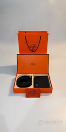 Set in Pelle – Cintura + Portafoglio Descrizione Elegante set composto da una cintura in pelle e un portafoglio coordinato, presentati in una confezione arancione iconica e immediatamente riconoscibile. Un kit pensato per chi apprezza accessori raffinati, materiali di alta qualità e un’estetica senza tempo. Contenuto del set - Cintura in pelle Realizzata in pelle liscia di alta qualità, dotata di fibbia metallica lucida a forma di lettera stilizzata. Design essenziale, moderno e perfetto per outfit formali o casual-eleganti. - Portafoglio in pelle Modello compatto con texture martellata, dotato di scomparti per carte, banconote e documenti. Sul fronte è presente un piccolo elemento metallico decorativo che richiama la fibbia della cintura. Caratteristiche principali - Pelle di alta qualità, morbida e resistente - Fibbia metallica lucida con finitura premium - Portafoglio con layout funzionale e tasche multiple - Confezione regalo arancione con shopper coordinata - Ideale come regalo elegante per occasioni speciali Per chi è pensato Un set perfetto per chi desidera un accessorio coordinato, di classe e con una forte presenza estetica. Ottimo come regalo per compleanni, anniversari o ricorrenze importanti. PREZZO TRATTABILE Prezzo set cintura portafoglio scatola: 85€ Prezzi di vendita singola: - Portafoglio 40€ - Cintura 60€ - Con confezione +20 €