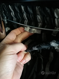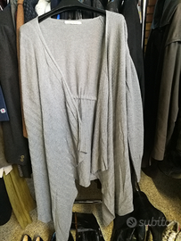 Abbigliamento ragazza: pantaloni in cotone caldo, tessuto a righe con elastico in vita. Marca Eiki taglia L, mai utilizzati NUOVI. Maglia-giacca asimmetrica con coulisse in vita in misto lana e cashmere marca Blugaya taglia 2. Un po' di peeling si una delle code