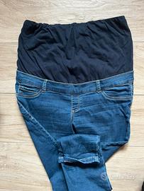 Set conposto da 2 paia di jeans premaman Mango, nero e blu, con comoda fascia in vita. In ottime condizioni, entrambi taglia L.