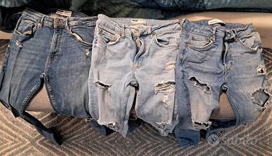 Set jeans uomo strappati marchio Bershka ottime condizioni pari al nuovo taglia 36 , 3 tonalità di blu, ottima Vestibilità.