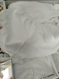 set lingerie donna con vestaglia, sottoveste e canotta con culotte con inserti ricamati
