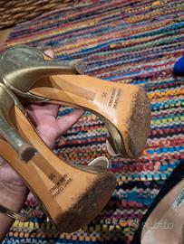 ♡ Scarpe color oro in cuoio con tacco comprate da Perugini, indossate poco. Le vendo a 15€