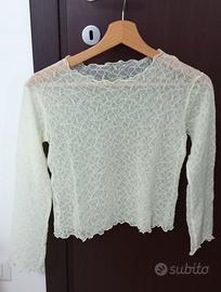 5. Maglia colore verde pistacchio in pizzo elasticizzato semitrasparente, girocollo senza fodera.