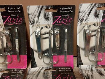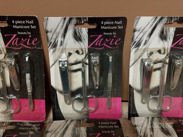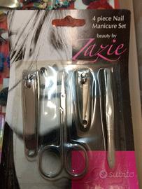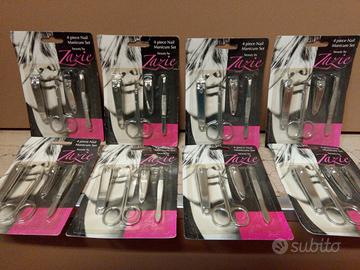 lotto 8 PZ Manicure mani e piedi composto da 4 pezzi per confezione di cui : forbicine per unghie,pinzette per ciglia, taglia unghie mani e taglia unghie piedi tutti in metallo. Nuovi sigillati