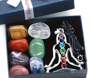 Bellissimo e salutare set comprendente una collana in caucciù con ciondolo 7 chakra grande 5 cm + 7 autentiche pietre dure naturali (con CERTIFICATO di GARANZIA) dai colori dei 7 chakra. La forma delle pietre può variare da quella in foto perché ogni pietra essendo naturale è di per sé unica. Il set è NUOVO da negozio.