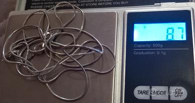 Vendo 2 collane UNISEX in puro ARGENTO925, lunghezza cm 60 cadauna, con possibilità di creare maxi collana , lavorazione "Snake" con SPESA UNICA DI SPEDIZIONE.Peso grammi 8,7. Invio in scatola. Consigli per la cura: per mantenere la splendida lucentezza dell'argento 925 nel tempo: Pulire regolarmente con un panno morbido specifico per argento. Evitare il contatto prolungato con profumi, creme o prodotti chimici aggressivi. Riporlo nella sua confezione quando non indossato per evitare graffi e ossidazione.