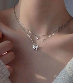 - 5A FOTO: collana argentata con farfalle a due fili - 5€