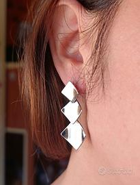 1) Orecchini geometrici argentati, lucidi: Stile moderno e minimal, effetto specchio🪞