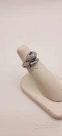 Set in argento composto da orecchini a cerchio e anello regolabile a forma di serpente. Finemente lavorati e rivestiti con pavimento di zirconi bianchi e blu. Marca NOVEOTTOUNO