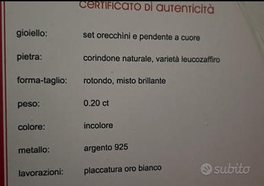"Eleganza, luce e un design che parla d'amore. Proponiamo una parure esclusiva composta da orecchini e pendente coordinati, un vero capolavoro di micromeccanica orafa che unisce la lucentezza dell'argento alla purezza delle pietre naturali.