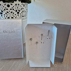 Set di orecchini da donna Guess in acciaio inossidabile in tonalità argento con pietre verdi.