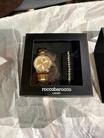 Vendo set nuovo, aperto solo per fare le foto con ancora ogni plastica al suo posto. Perfetto quindi anche come regalo. ( orologio e bracciale color oro roccobarocco)