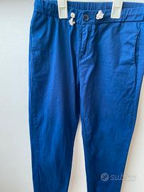1. Pantalone primaverile/autunnale lungo in cotone di colore blu marca Primigi - taglia 12 anni altezza 146 cm con tasche anteriori e posteriori, elastico in vita più laccetto ed elastico alla caviglia