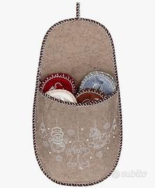 Set Pantofole Ospiti Winter Thun. Articolo mai utilizzato, ancora in confezione originale e cartellino. Articolo fuori produzione. Materiale: Tela/Acrilico e sintetico. Taglia SMALL, probabile numerazione > n. 40 Dimensioni: 52,5x28,5x6,5CM Presenti all’interno 4 paia di pantofole: marrone-grigio-rosso-bianco. Valore: 26,90€