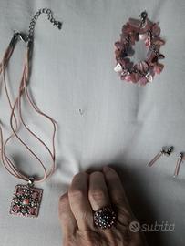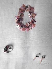 Set rosa collana, braccialetto e orecchini