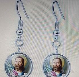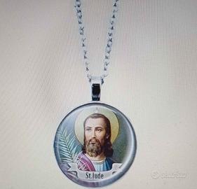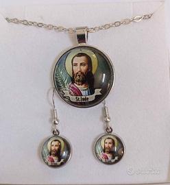 Bellissimo set di gioielli con San Giuda. Il set include: - Collana con ciondolo - Braccialetto - Un paio di orecchini. I gioielli sono in lega color argento e sono in ottime condizioni.
