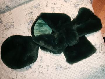 Set completo cappello e sciarpa Primadonna, in ecopelliccia colore verde scuro. Cappello modello colbacco russo, sciarpa con passante. Come nuovi.