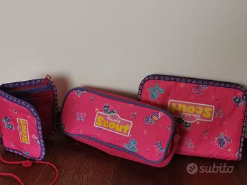 Vendo perfetto set scuola marca Scout, alta qualità tedesca, zaino ergonomico (per la salute di spalle e schiena), portapenne, borsa - per educazione motoria o altro -, portadocumenti, astuccio. Tutto in perfetto stato, ad eccezione dell'astuccio, che è assolutamente utilizzabile ma mostra segni di usura. Costo del set nuovo oltre 200 euro.