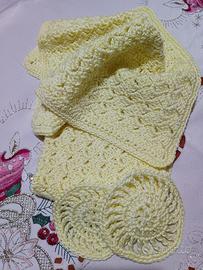 Set Skincare 2 Lavette con 2 Dischetti in Puro Cotone 100% Egitto Fatto a mano. Colore vaniglia.
