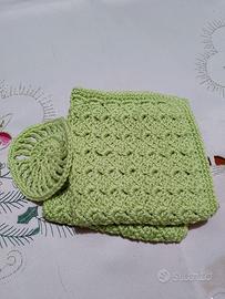 Set Skincare 2 Lavette con 2 Dischetti in Puro Cotone 100% Egitto. Fatte a Mano. Colore verde mela.
